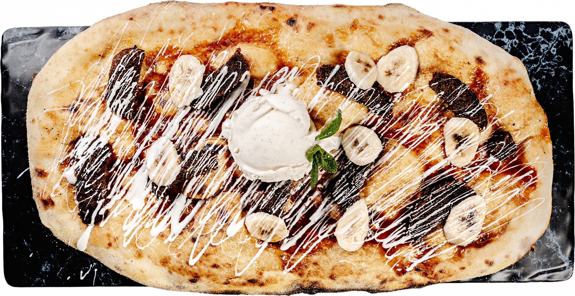 Fried Bao bun + cinnamon sugar +home-made vanilla gelato + caramelised banana + toffee sauce